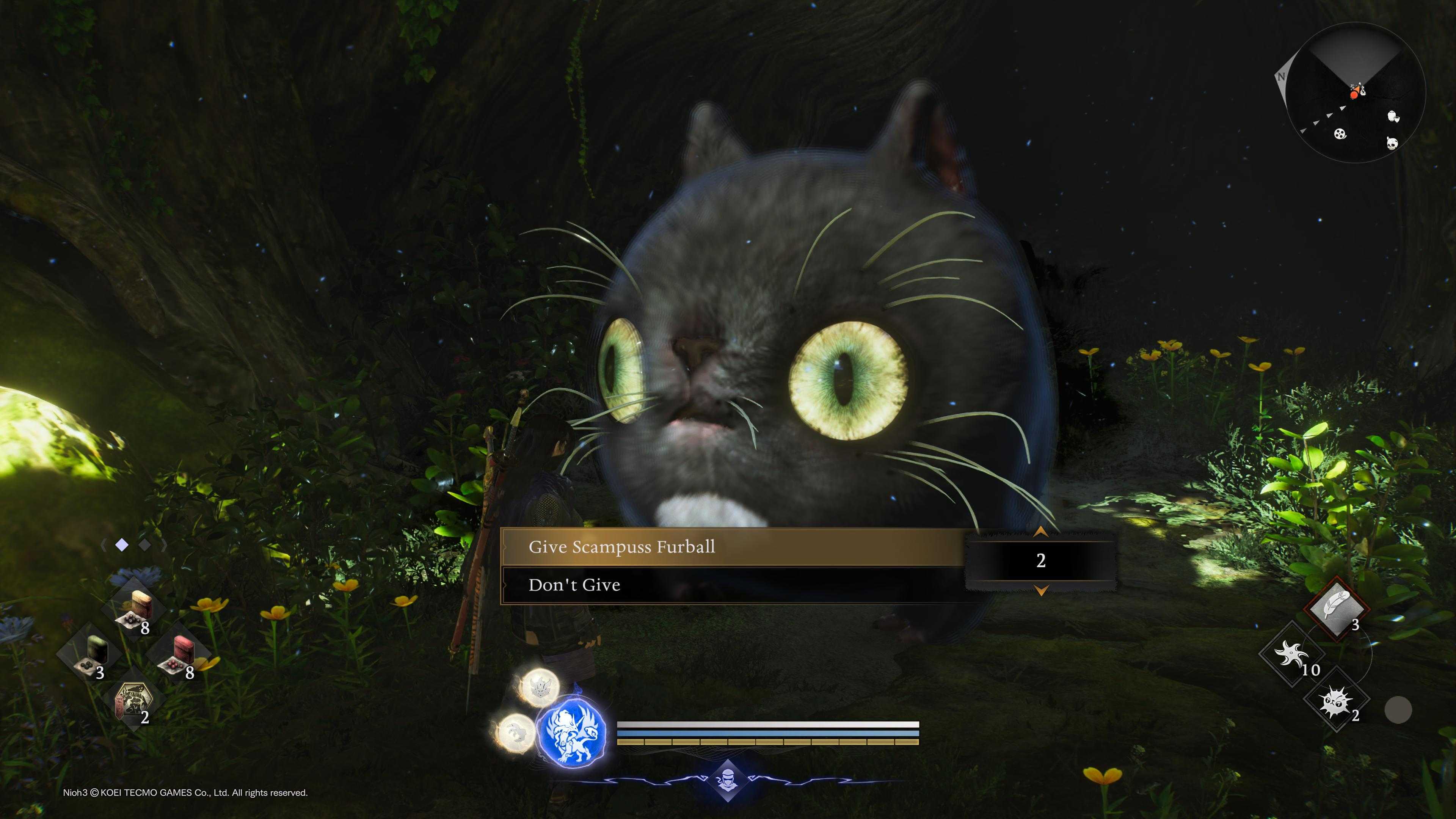 Scampuss are oddly round cats that roll around at high speeds. There are 16 Scampuss in total in Nioh 3, and two of those are Timid Scampuss.